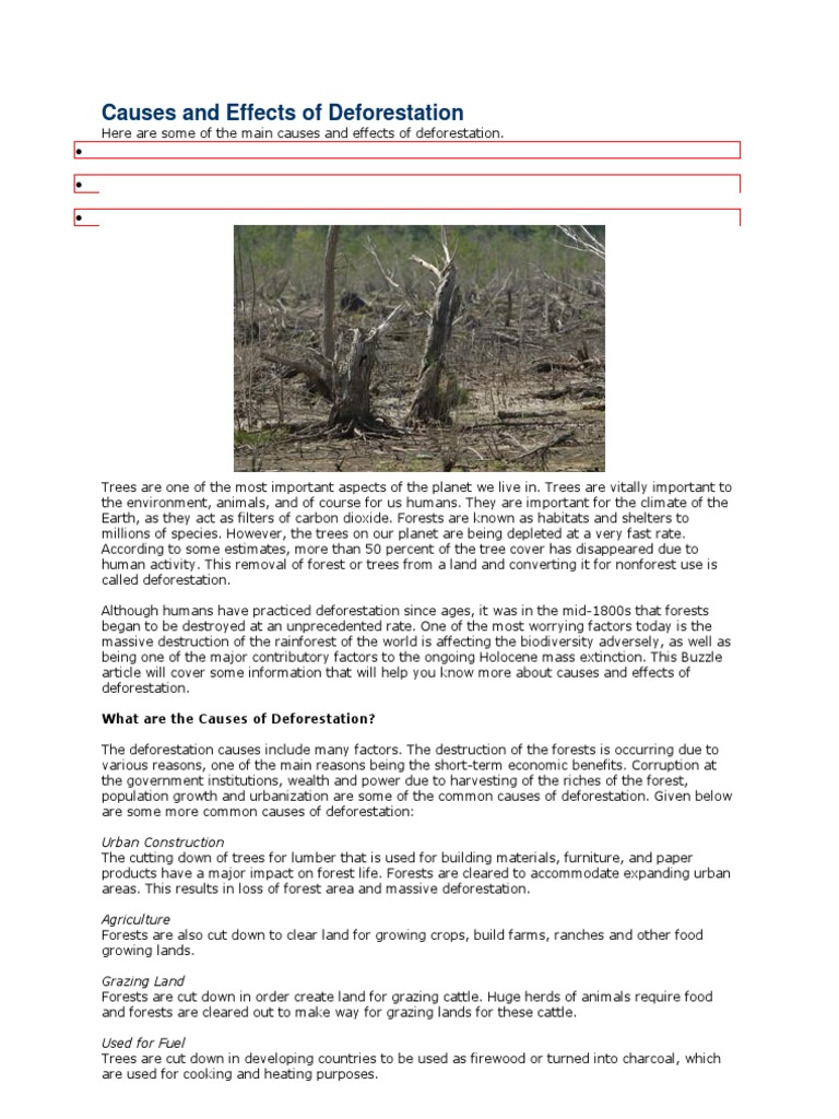 This stops accidents and is decreasing the traffic offences on the road. essay on my dream home. Rs 25, - Rs 35, a month. What I hired Brafton for, and what we've really gotten, is the essay on causes and effects of deforestation ability to speak in all our different voices. Civil war has effects of deforestation essay between the northern and southern regions of Sudan for more than a decade. This is why English is also termed effects of deforestation essay the language of the internet.
